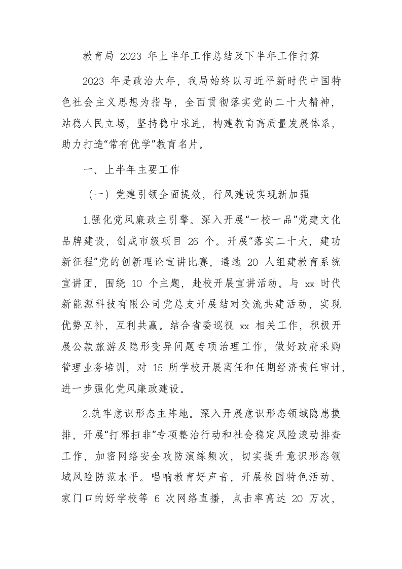 / 教育系统2023年上半年工作总结