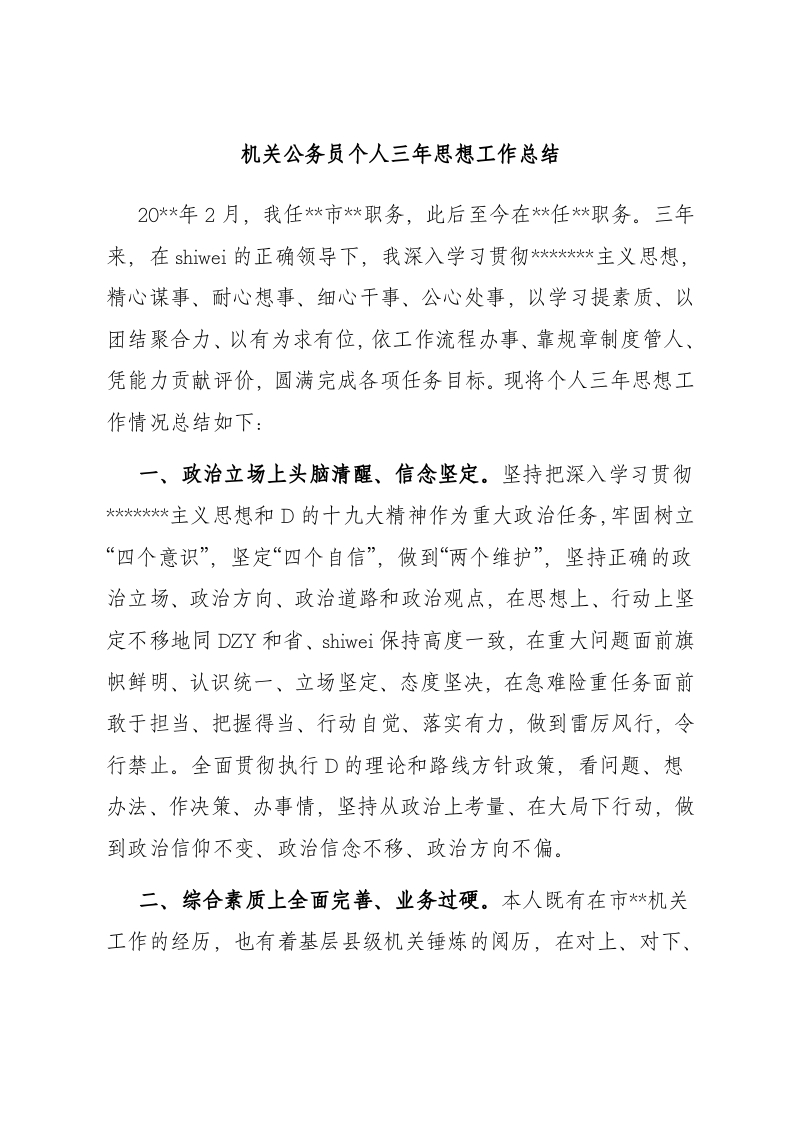 / 机关公务员个人三年思想工作总结