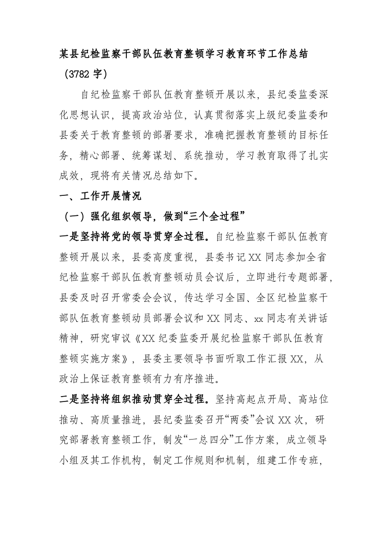 / 某县纪检监察干部队伍教育整顿学习教育环节工作总结