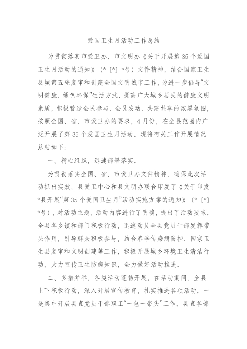 / 爱国卫生月活动工作总结