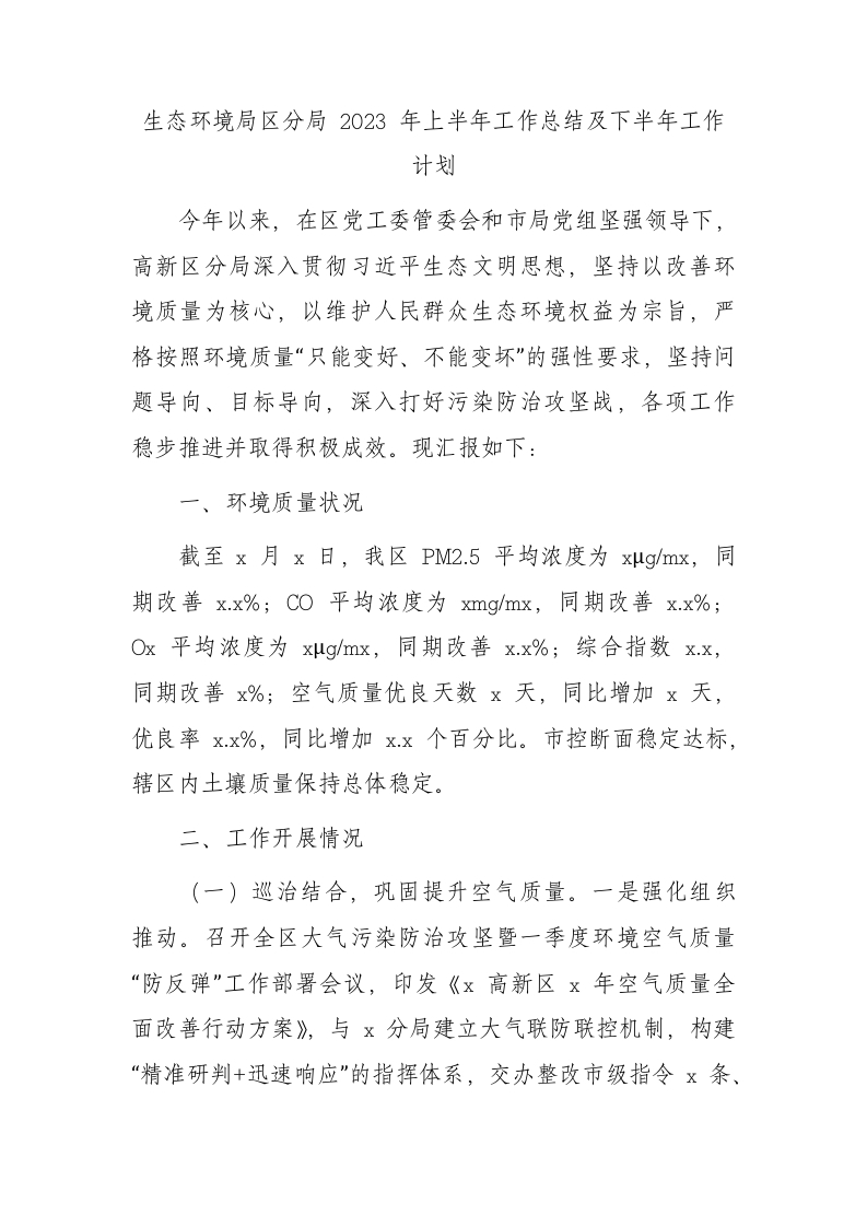 / 生态环境分局2023年上半年工作总结