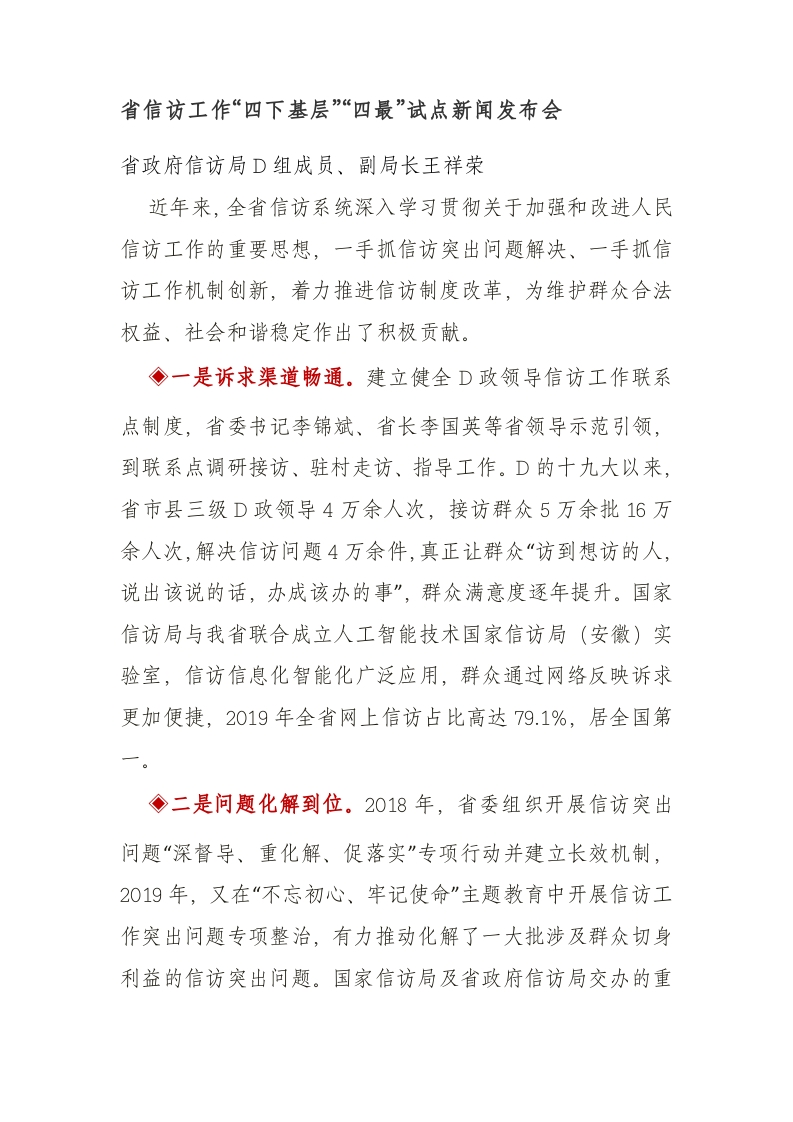 / 省信访工作“四下基层”“四最”试点新闻发布会