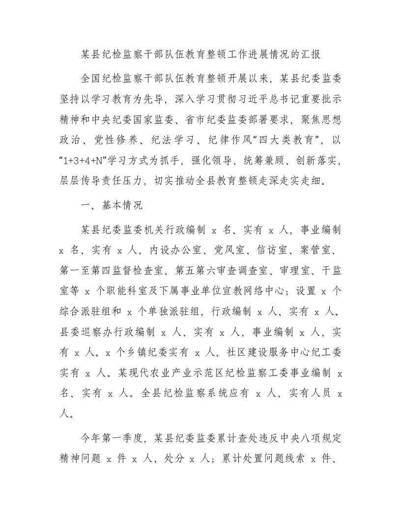 / 纪检监察干部队伍教育整顿工作进展情况(学习教育环节)总结汇报3700字