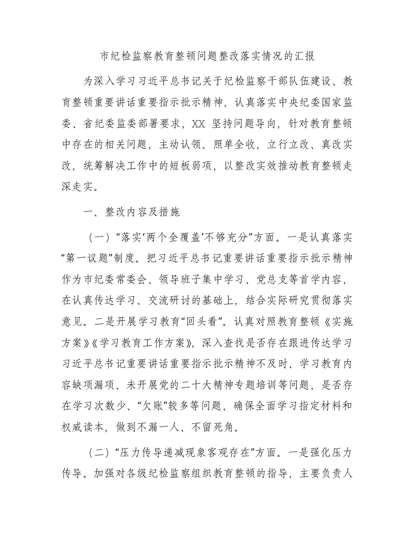 / 纪检监察教育整顿问题整改落实情况总结汇报1700字