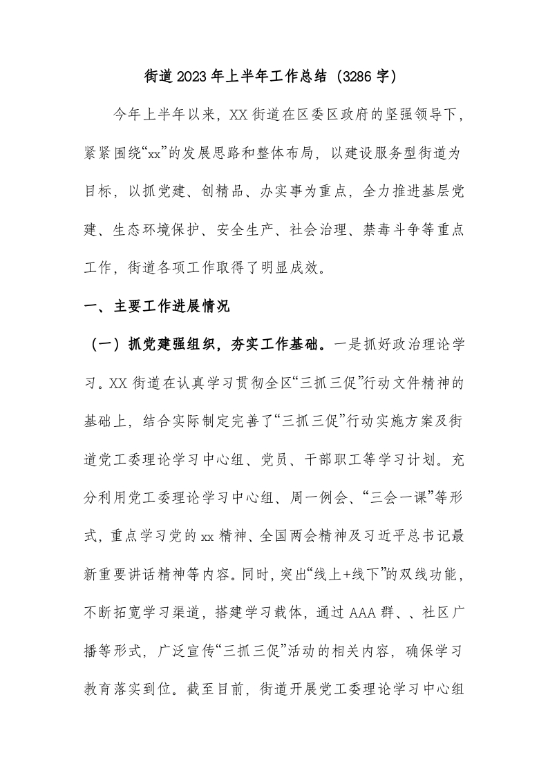 / 街道2023年上半年工作总结