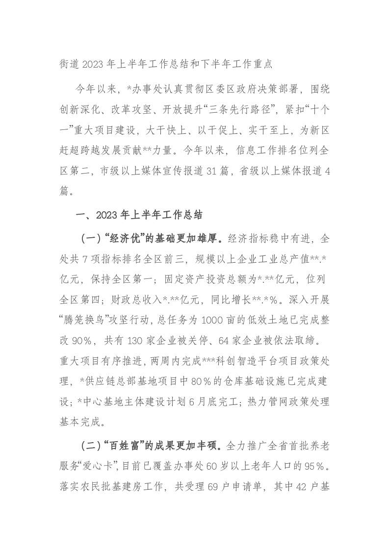 / 街道2023年上半年工作总结和下半年工作重点(计划)