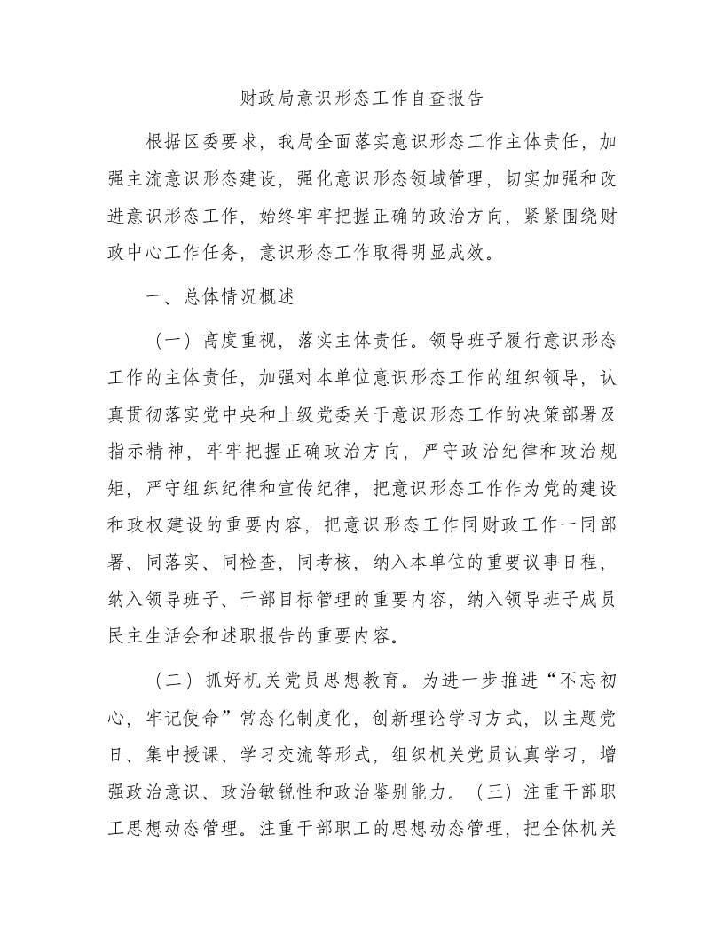 / 财政系统意识形态工作自查总结报告3500字
