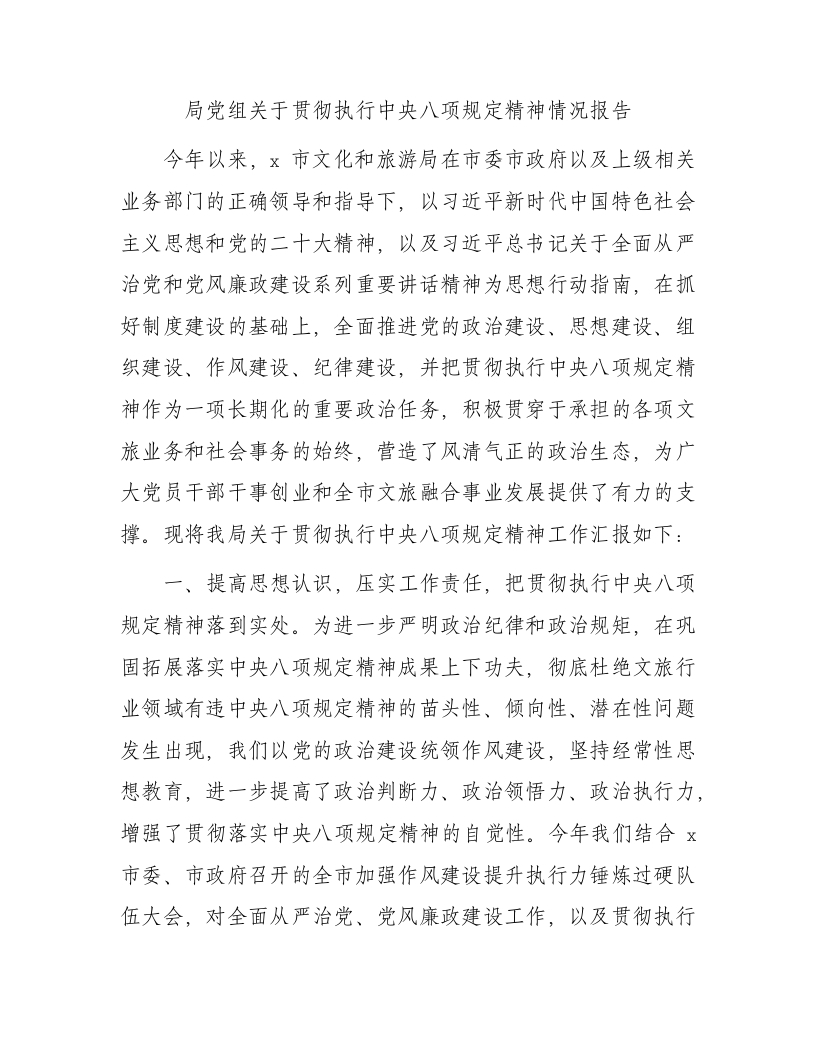 / 贯彻执行八项规定精神情况总结报告(文旅4100字)