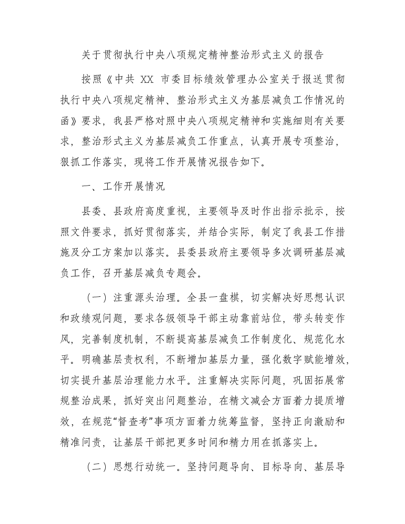 / 贯彻执行八项规定精神整治形式主义的总结报告2800字