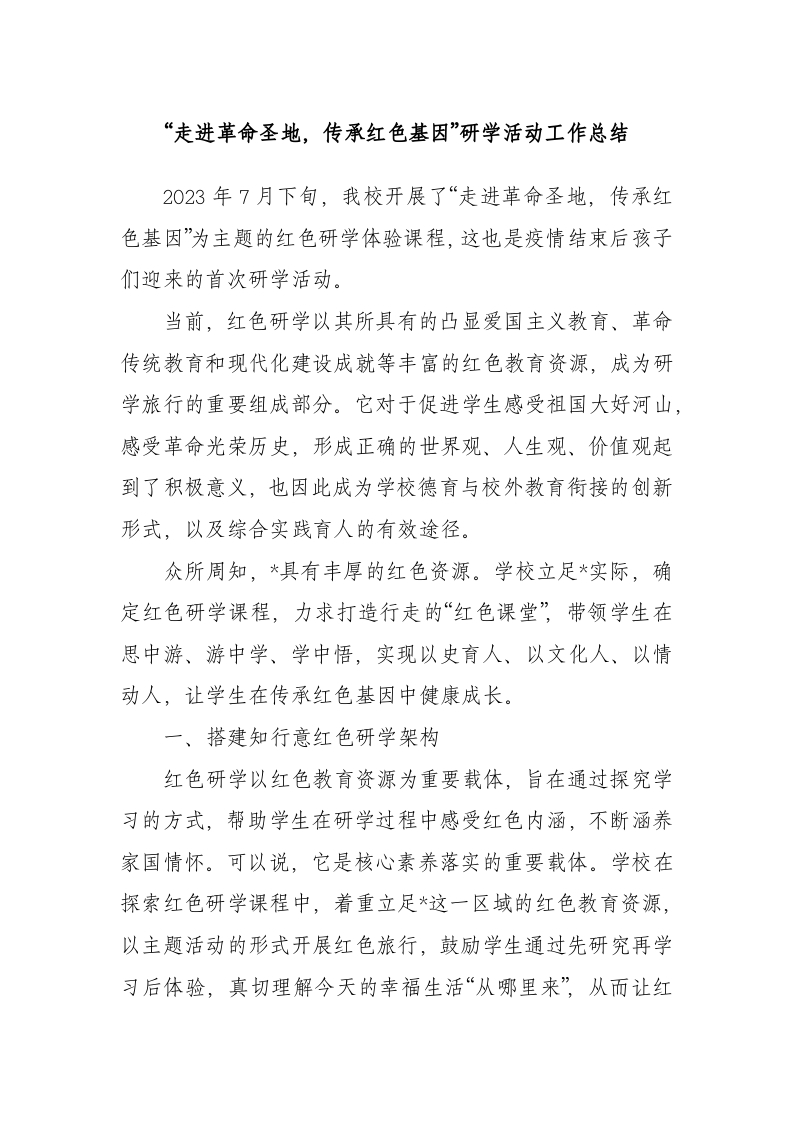 / 走进革命圣地,传承红色基因”研学活动工作总结
