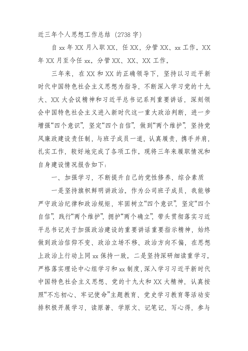 近三年个人思想工作小结(二)