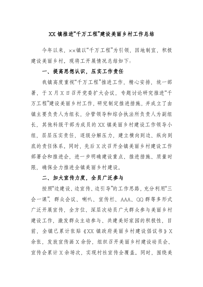/ 镇推进“千万工程”建设美丽乡村工作总结