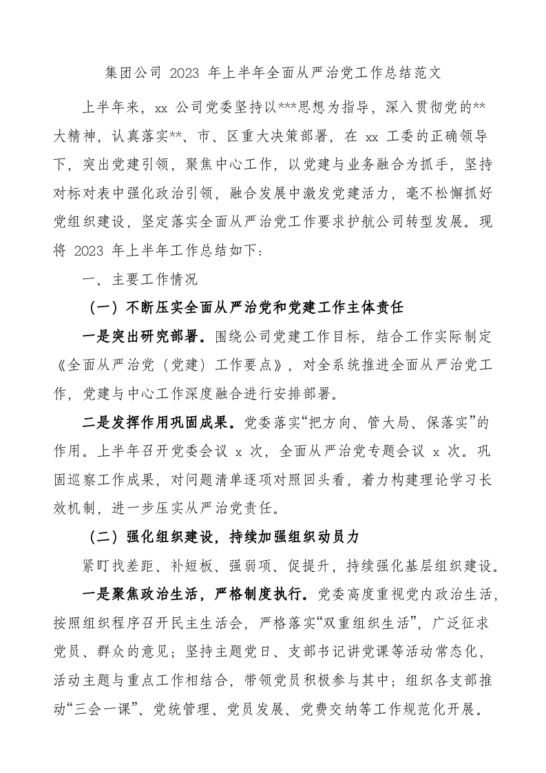 / 集团公司2023年上半年全面从严治党工作总结范文