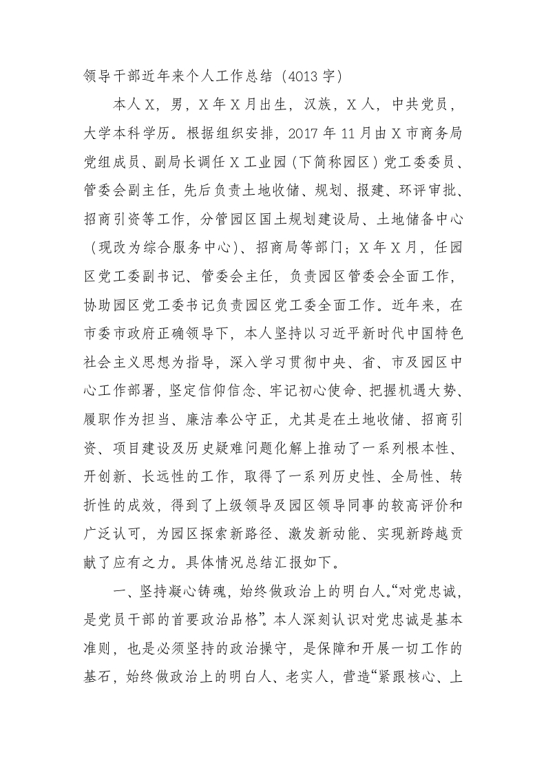 / 领导干部近年来个人工作总结