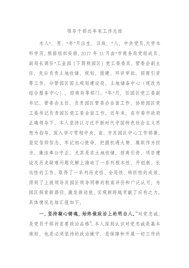 / 领导干部近年来工作总结