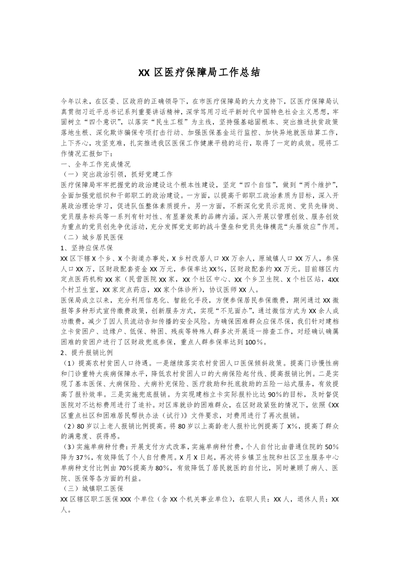 / XX区医疗保障局工作总结