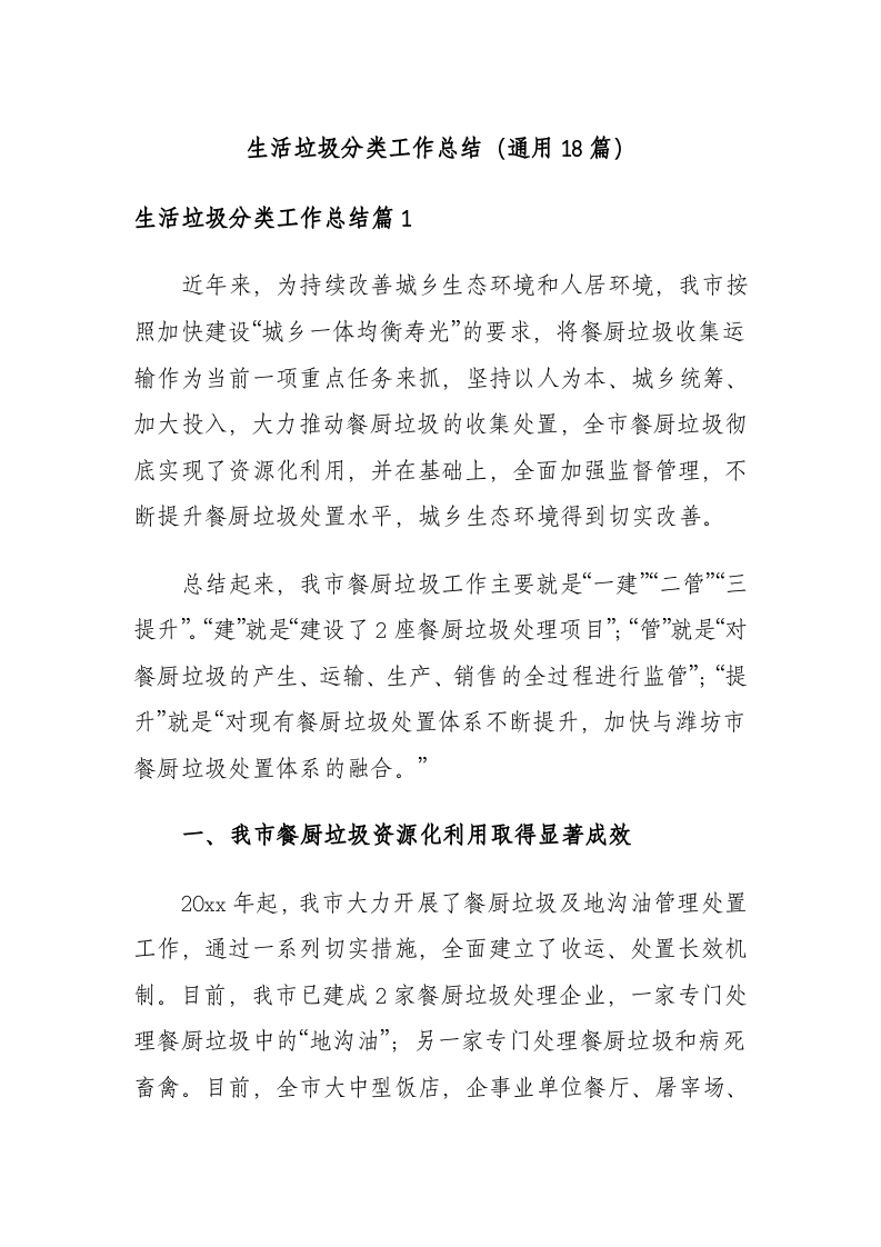 / 生活垃圾分类工作总结(通用18篇)