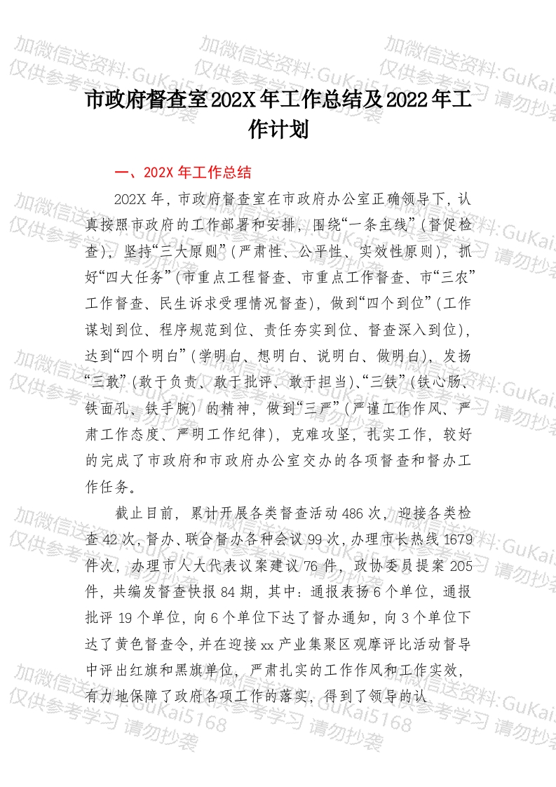 / 市政府督查室202X年工作总结及2022年工作计划
