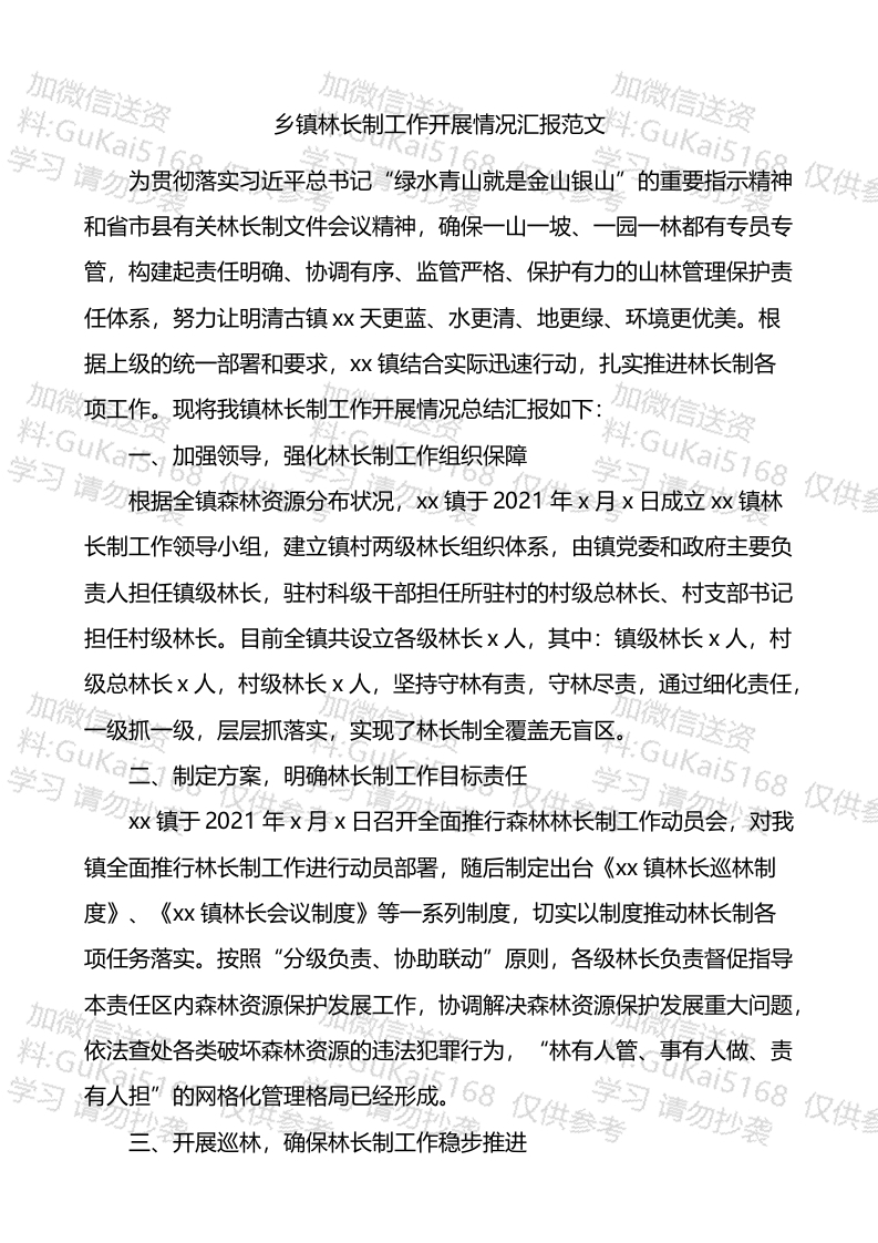 / 乡镇林长制工作开展情况汇报范文工作汇报总结报告