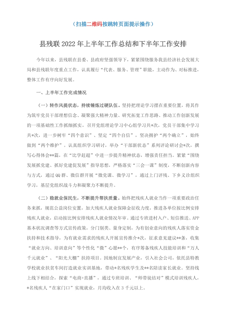 / 县残联2022年上半年工作总结和下半年工作安排