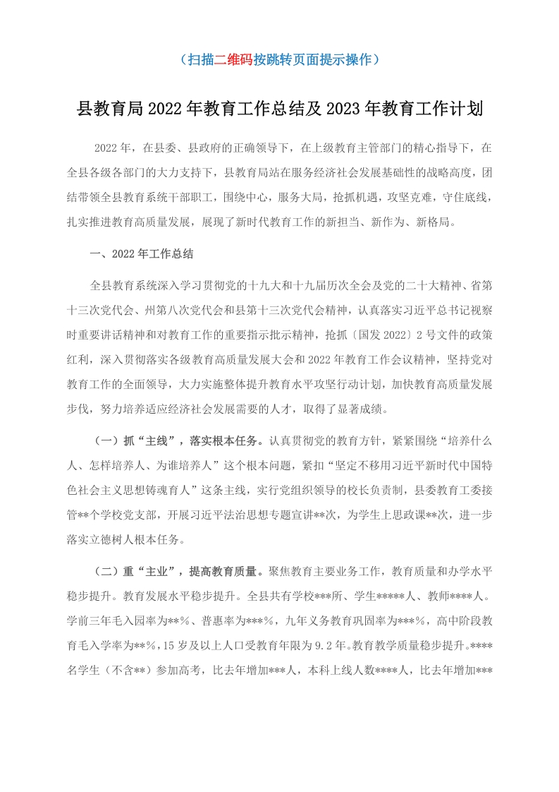 / 县教育局2022年教育工作总结及2023年教育工作计划(1)