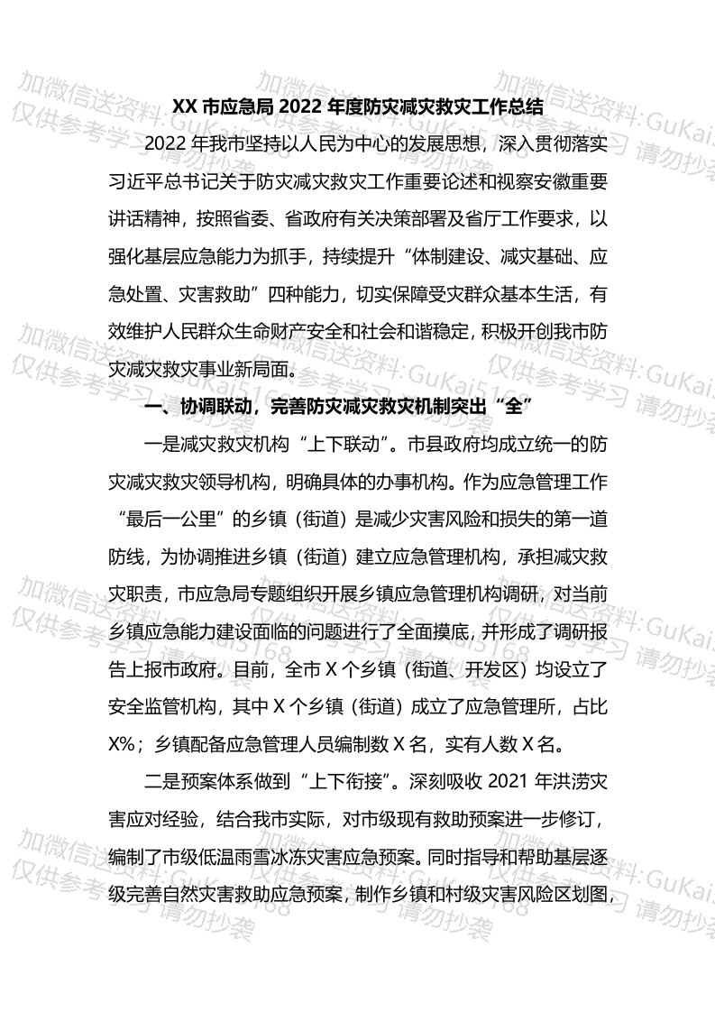 / XX市应急局2022年度防灾减灾救灾工作总结