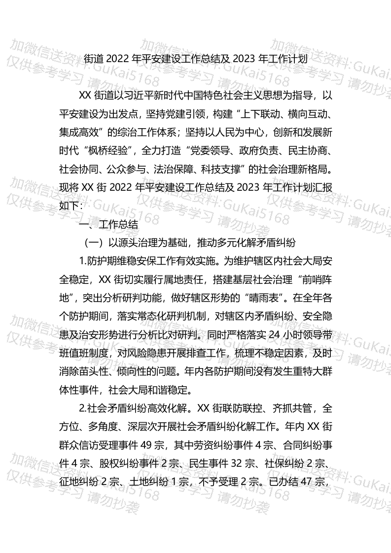 / 街道2022年平安建设工作总结及2023年工作计划