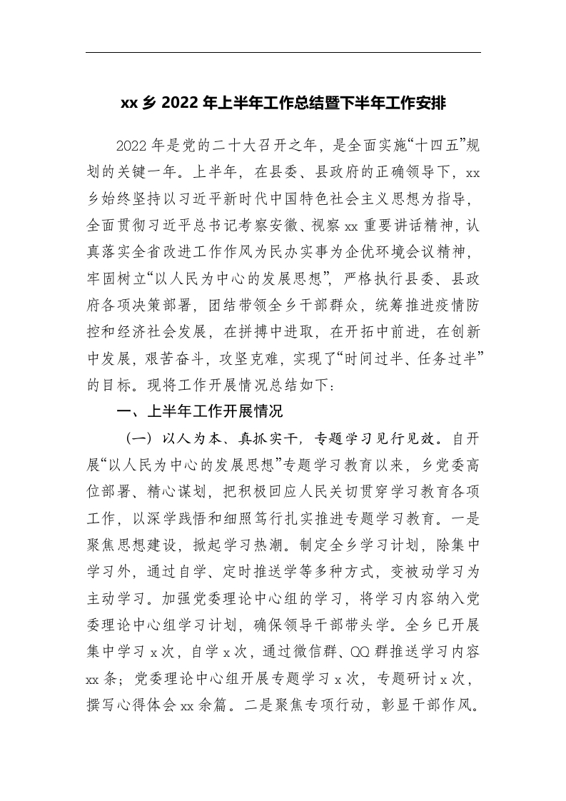 / 乡2022年上半年工作总结暨下半年工作安排