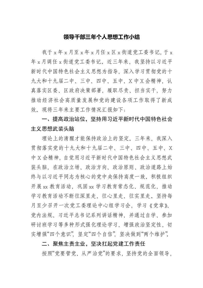 三年个人思想工作总结结