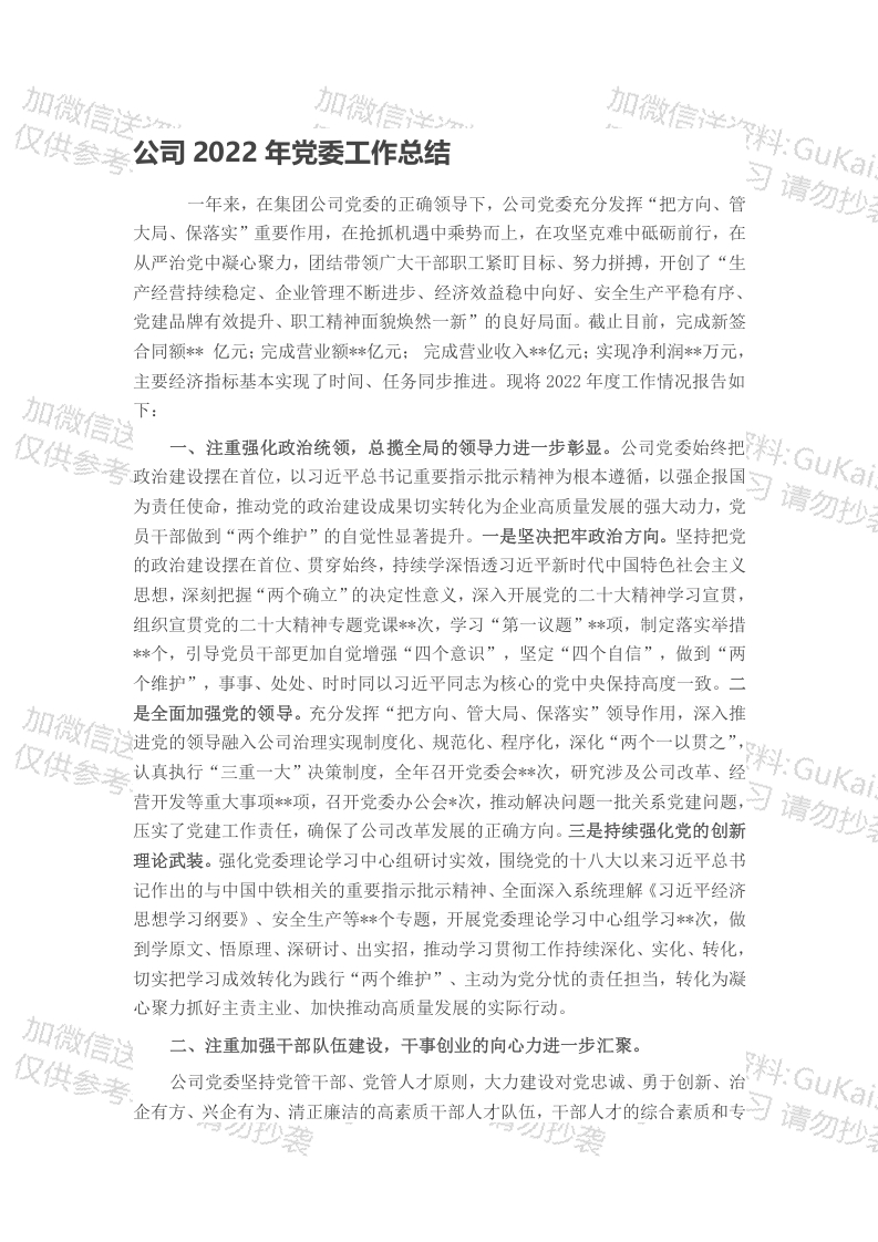 / 公司2022年党委工作总结