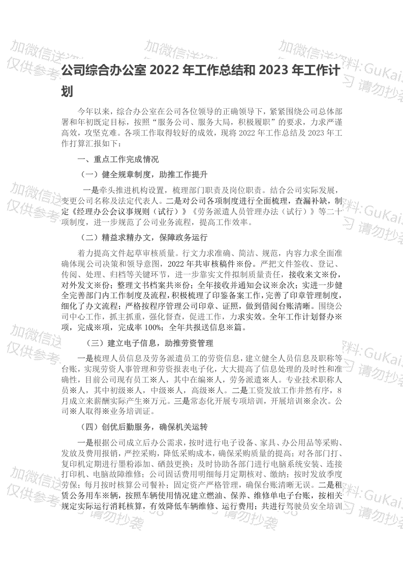 / 公司综合办公室2022年工作总结和2023年工作计划