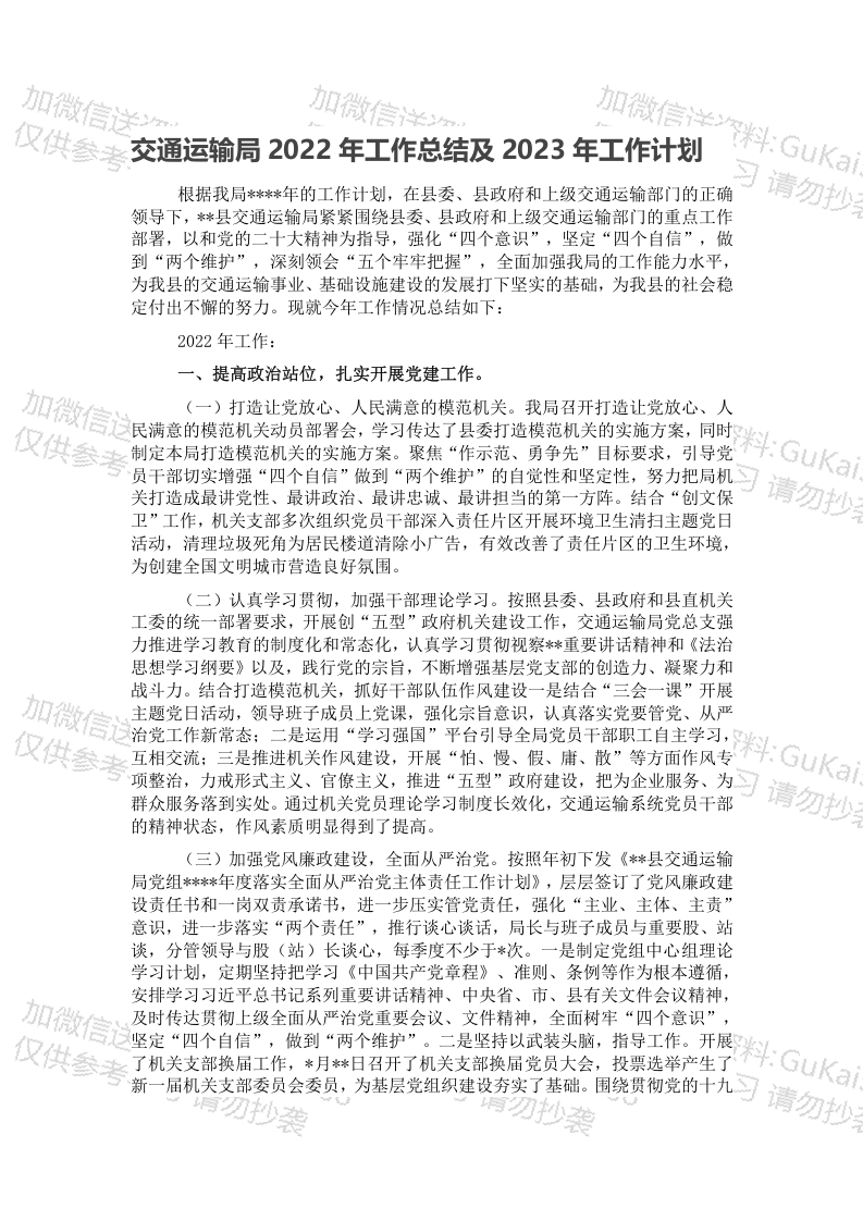 / 交通运输局2022年工作总结及2023年工作计划
