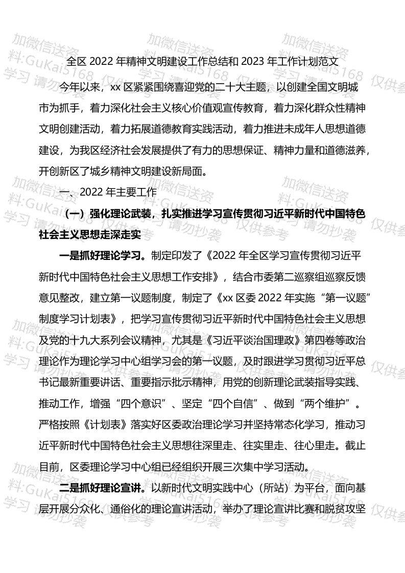 / 全区2022年精神文明建设工作总结和2023年工作计划