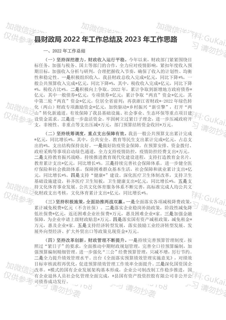 / 县财政局2022年工作总结及2023年工作思路