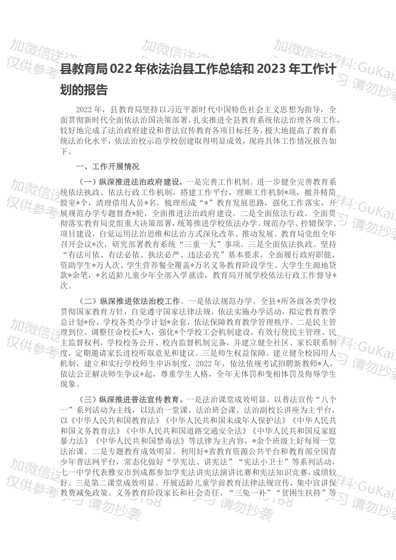 / 县教育局022年依法治县工作总结和2023年工作计划的报告