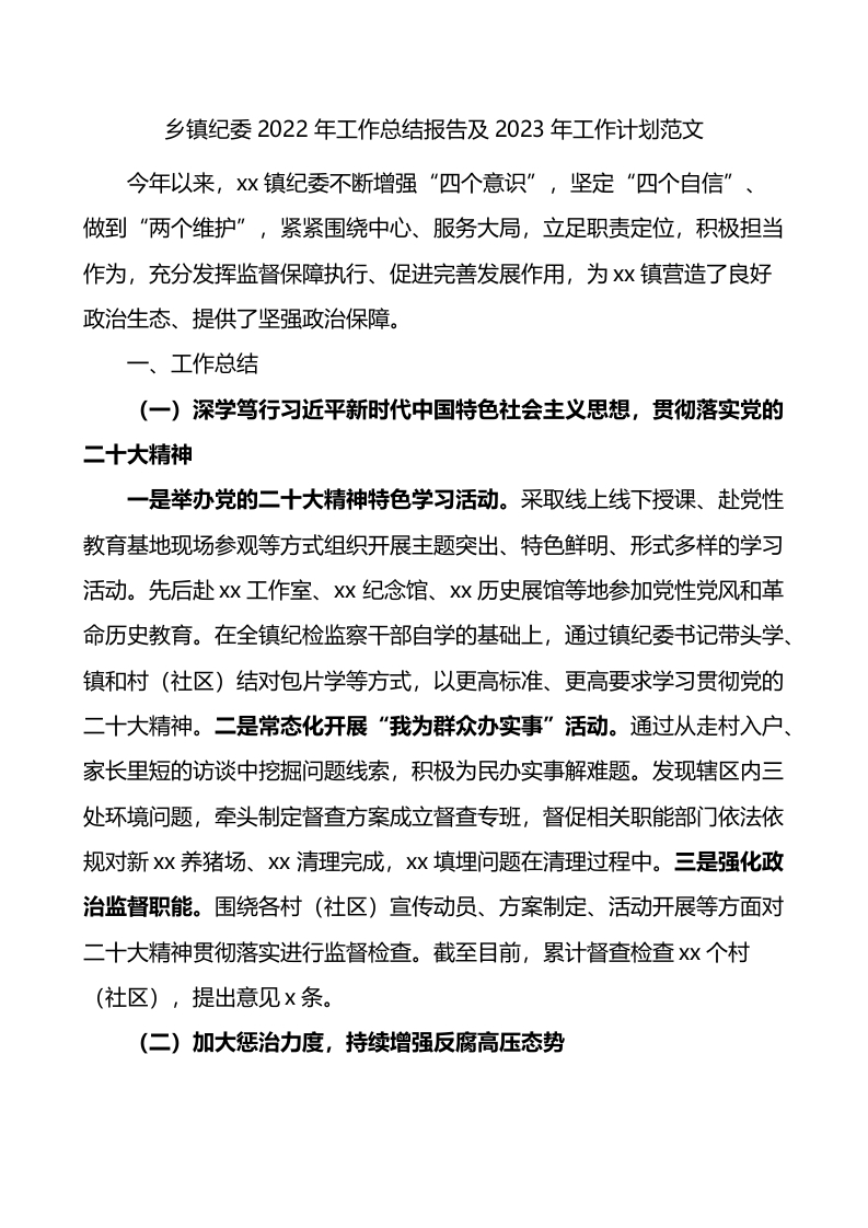 乡镇纪委2022年工作总结报告及2023年工作计划