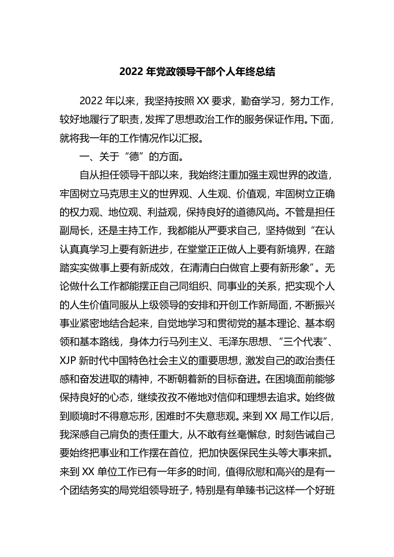 / 2022年党政领导干部个人年终总结