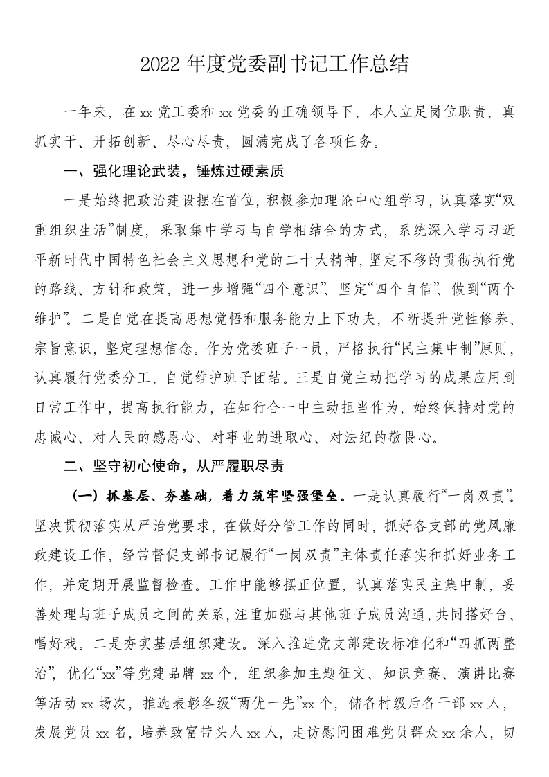 2022年度党委副书记工作总结