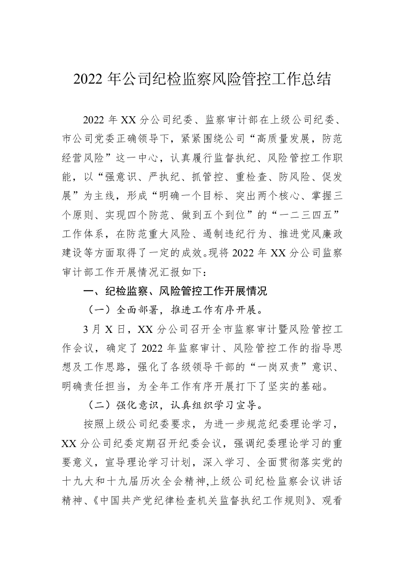 / 2022年公司纪检监察风险管控工作总结 (1)