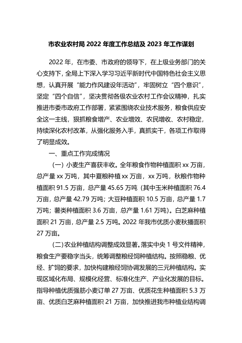 市农业农村局2022年度工作总结及2023年工作谋划 (1)