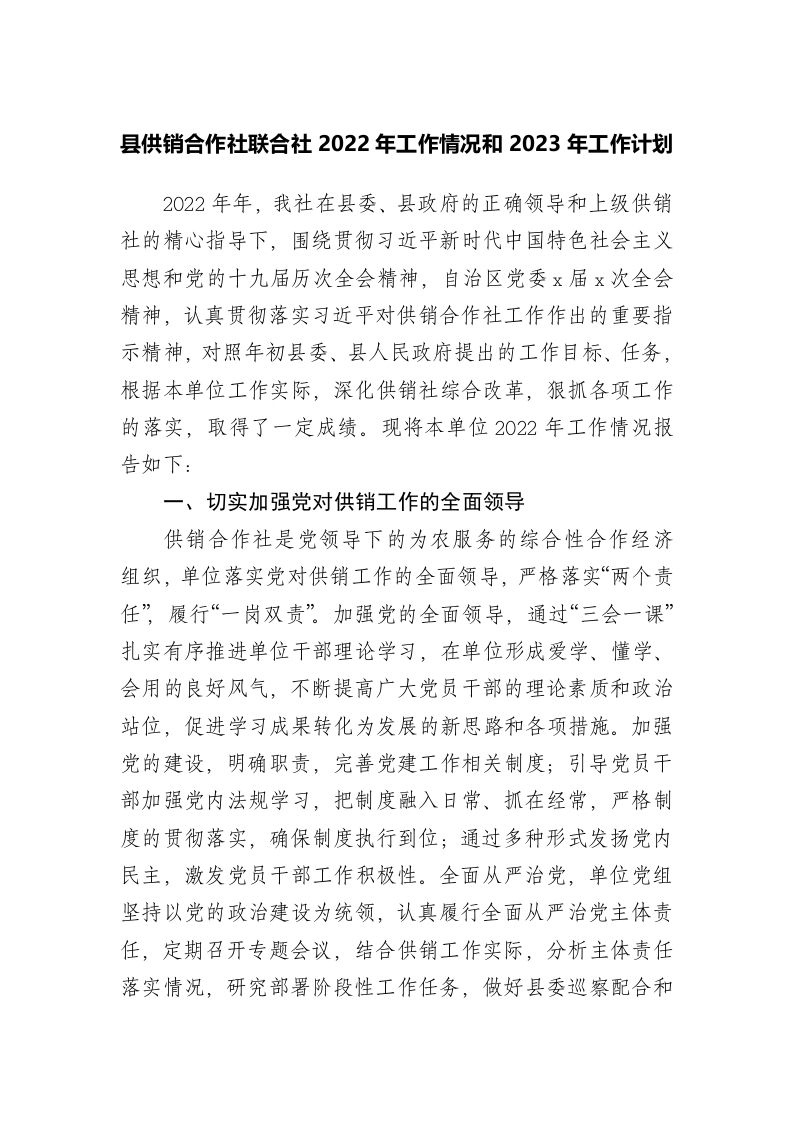 / 县供销合作社联合社2022年工作情况和2023年工作计划