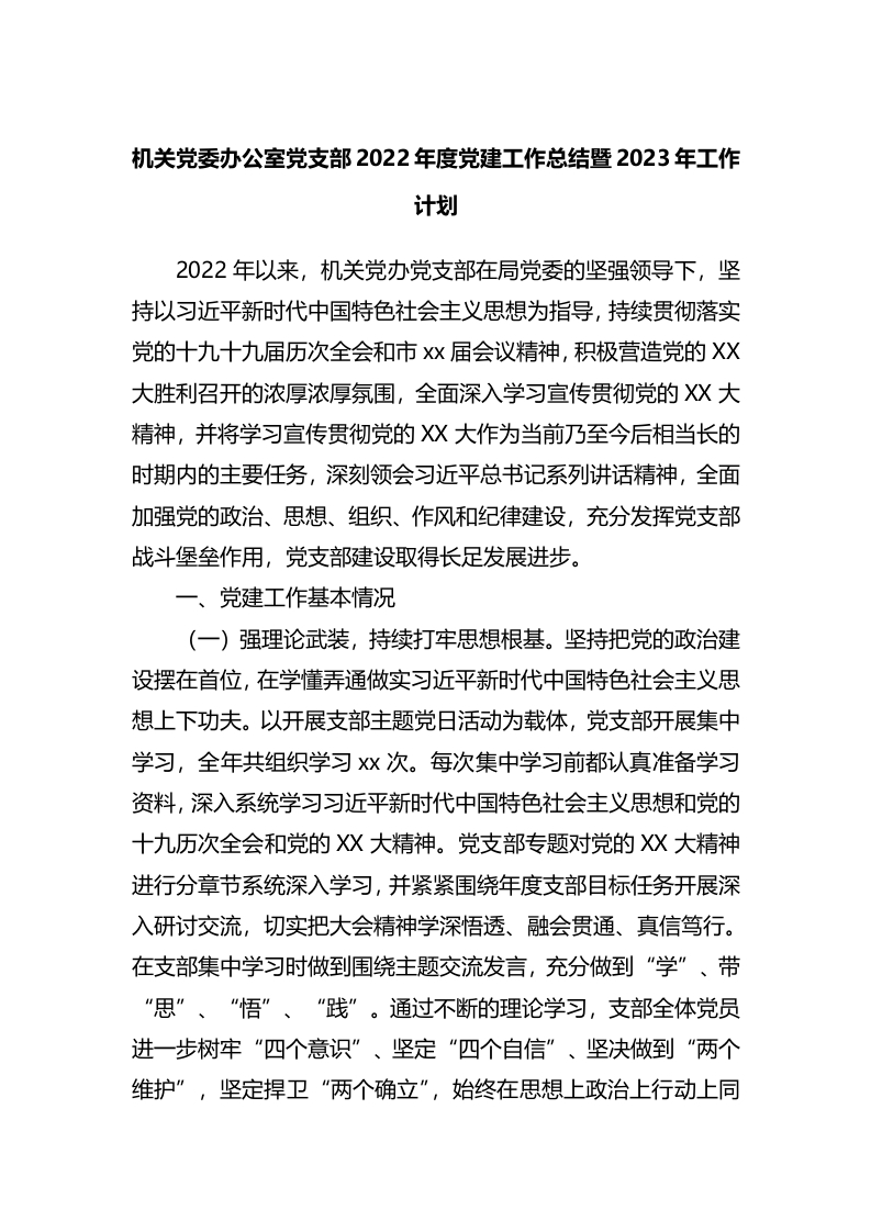 / 机关党委办公室党支部2022年度党建工作总结暨2023年工作计划