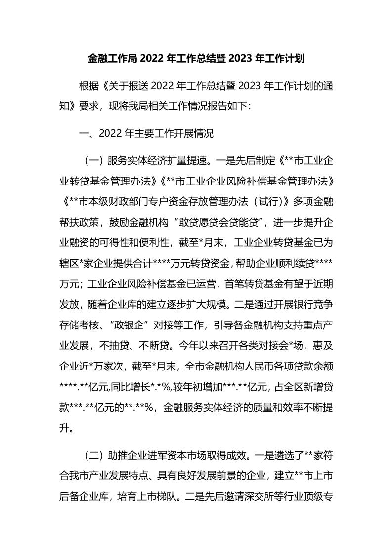 / 金融工作局2022年工作总结暨2023年工作计划