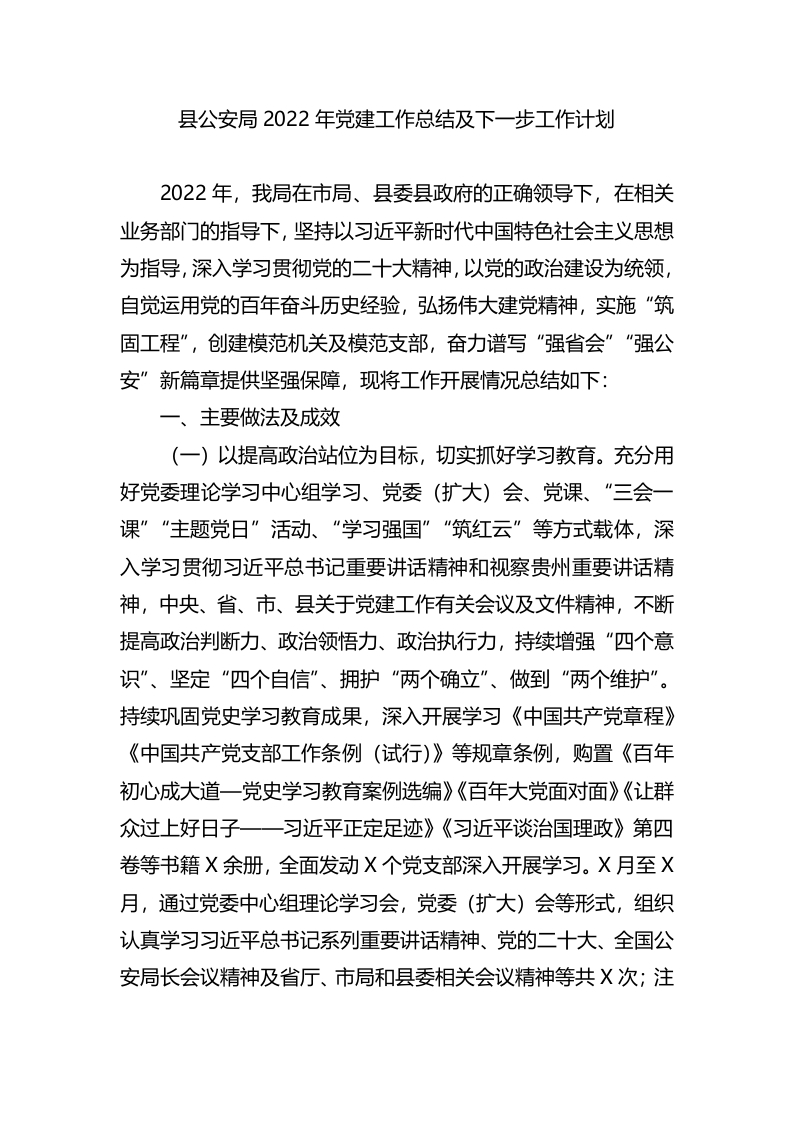 / 县公安局2022年党建工作总结及下一步工作计划
