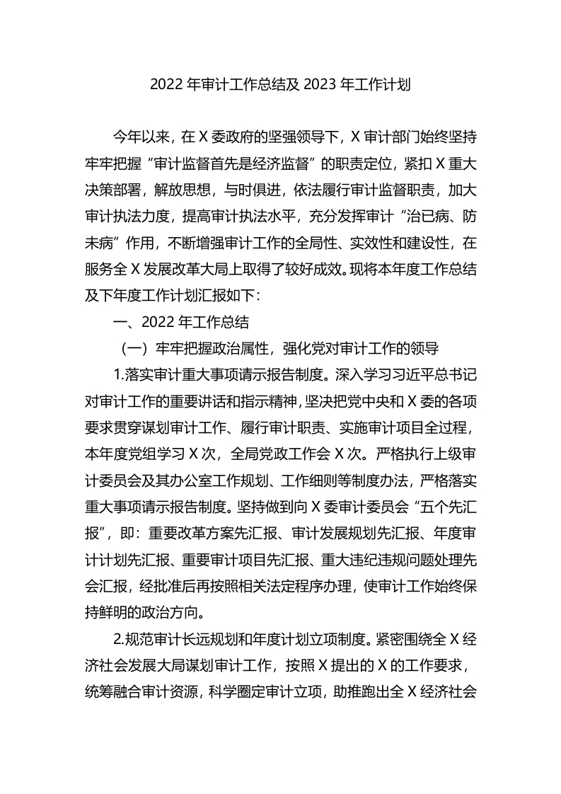 2022年审计工作总结及2023年工作计划