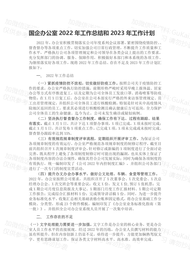 / 国企办公室2022年工作总结和2023年工作计划
