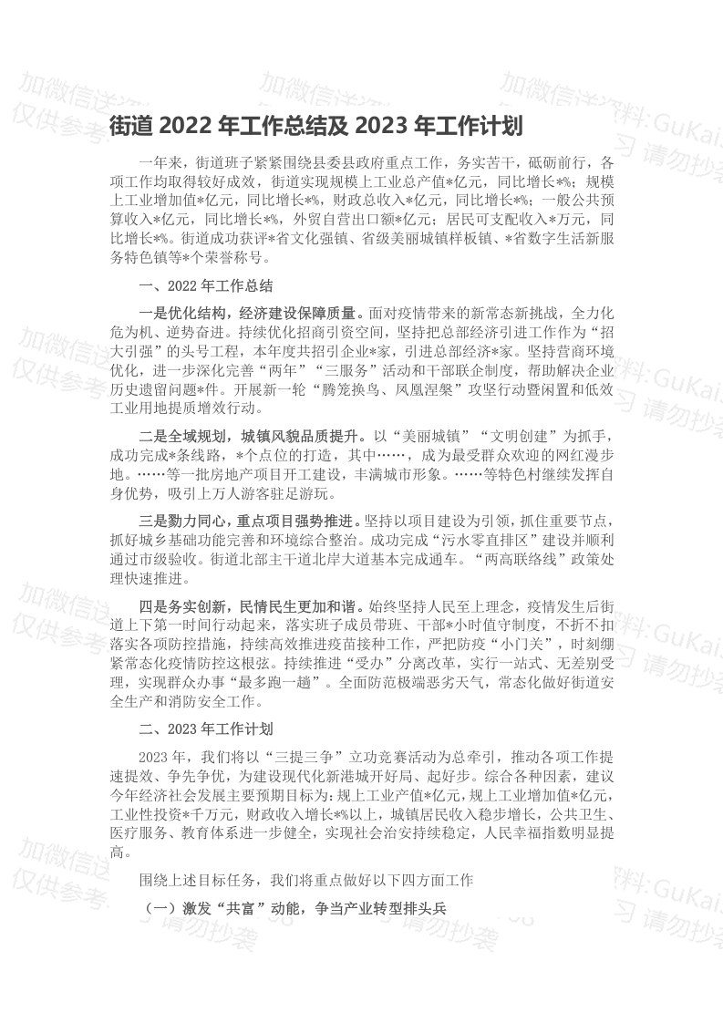 街道2022年工作总结及2023年工作计划(二)