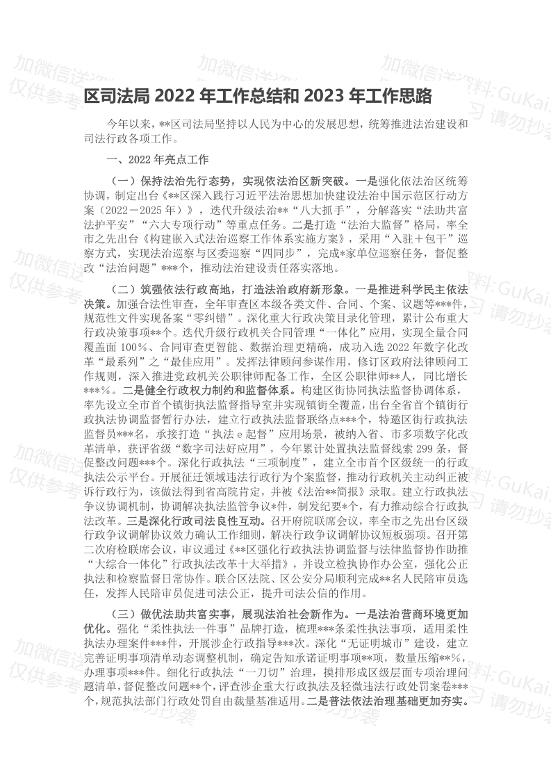 / 区司法局2022年工作总结和2023年工作思路