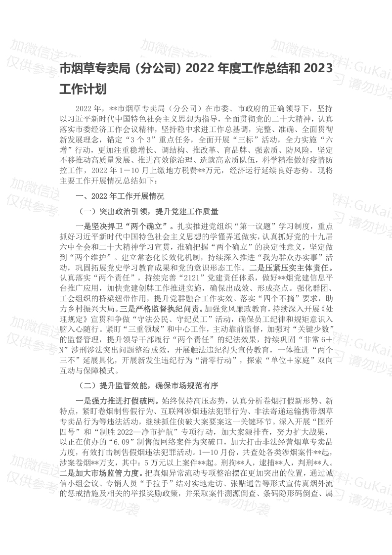 / 市烟草专卖局(分公司)2022年度工作总结和2023工作计划