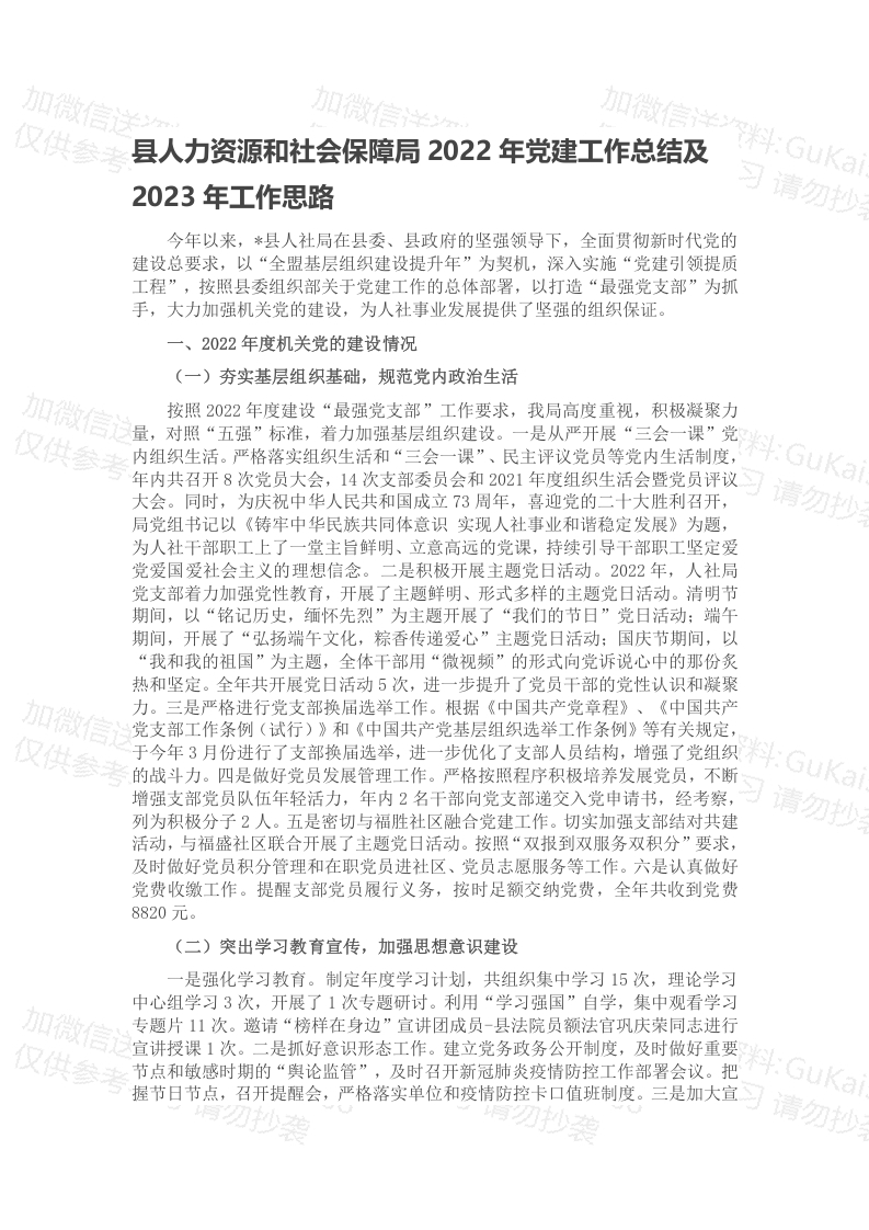 / 县人力资源和社会保障局2022年党建工作总结及2023年工作思路